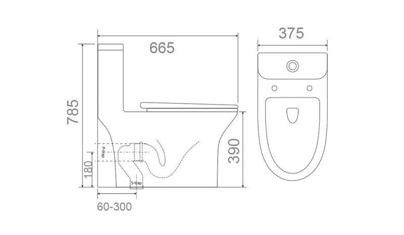 - Tâm xả: Thoát ngang 180 / Thoát sàn 60-300 mm