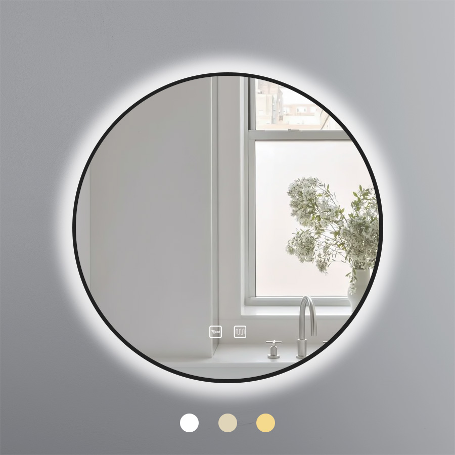 Gương Phòng Tắm EGK6060 – Vẻ Đẹp Tròn Đen Thanh Lịch, Ánh Sáng Lung Linh