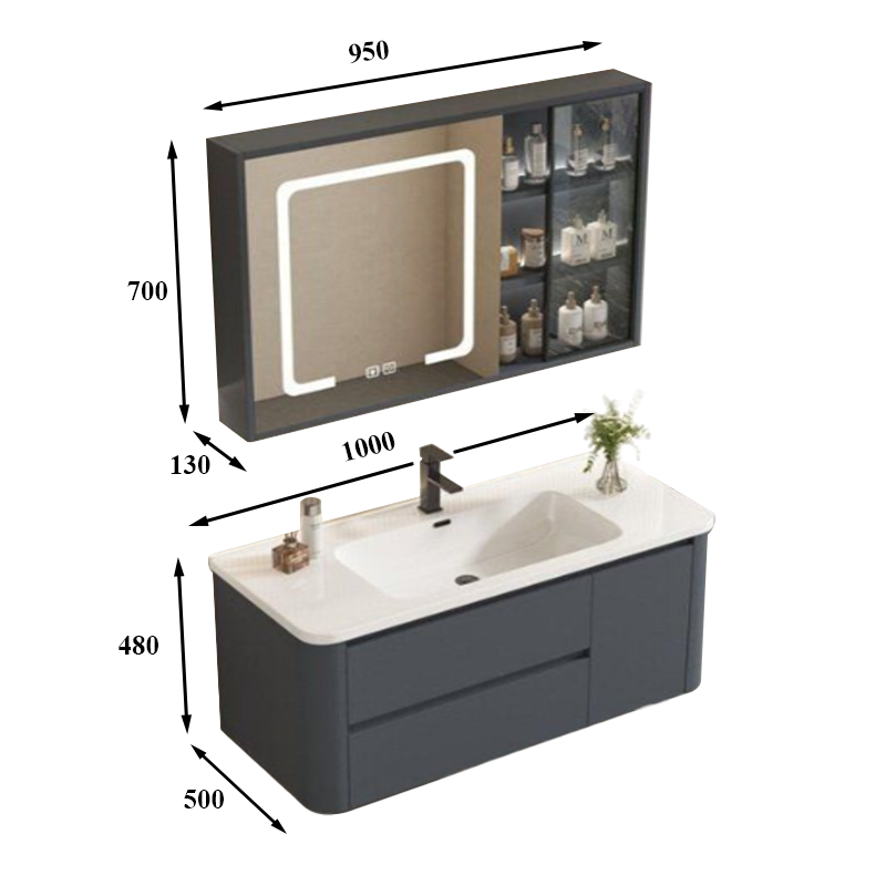 Kích thước tủ chậu (Rộng x Sâu x Cao):1000mm x 500mm x 460mm